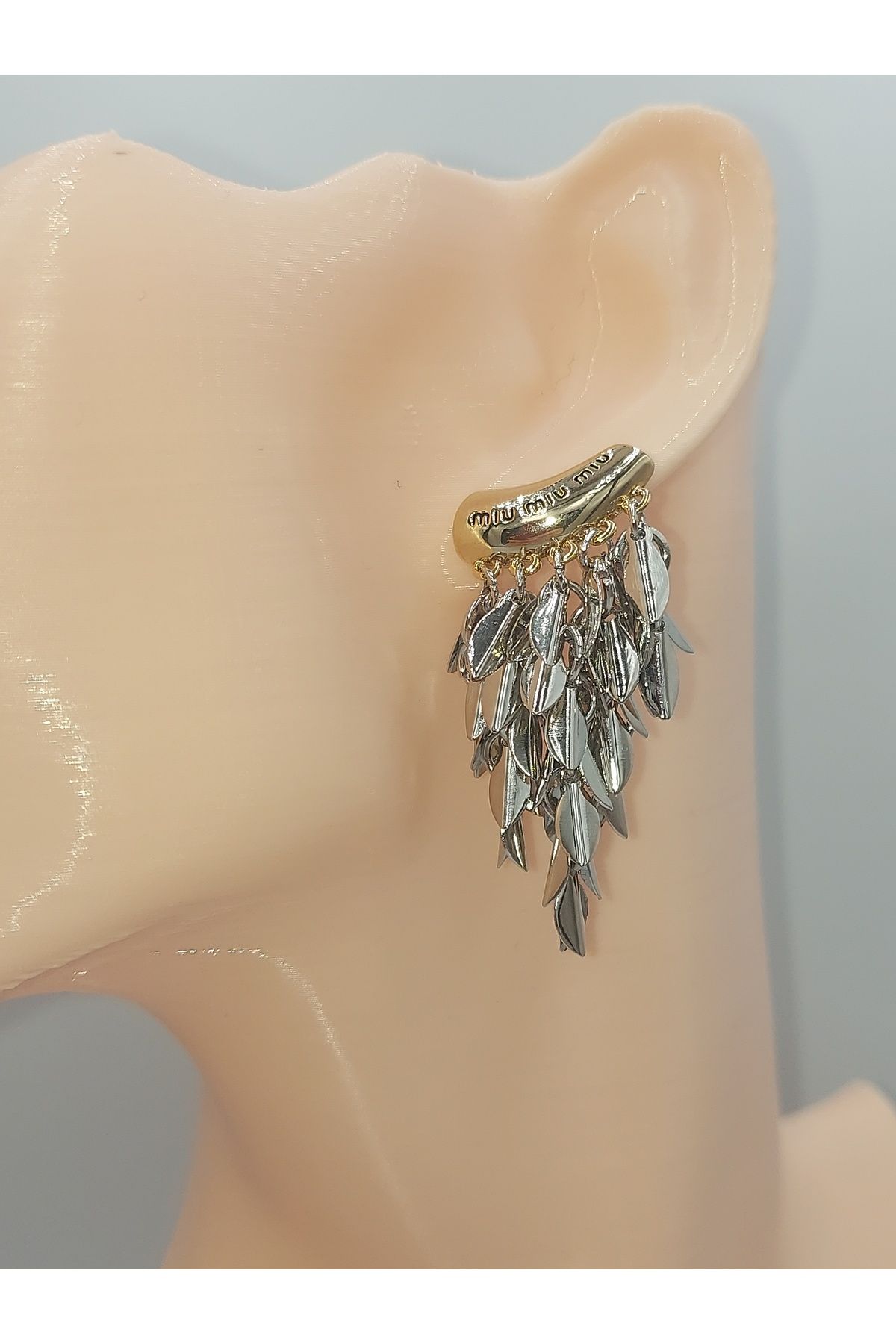 Altın Renk Sallantılı Gümüş İğne Küpe