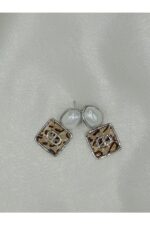 İncili Leoparlı Gümüş Renk Gümüş İğne Küpe