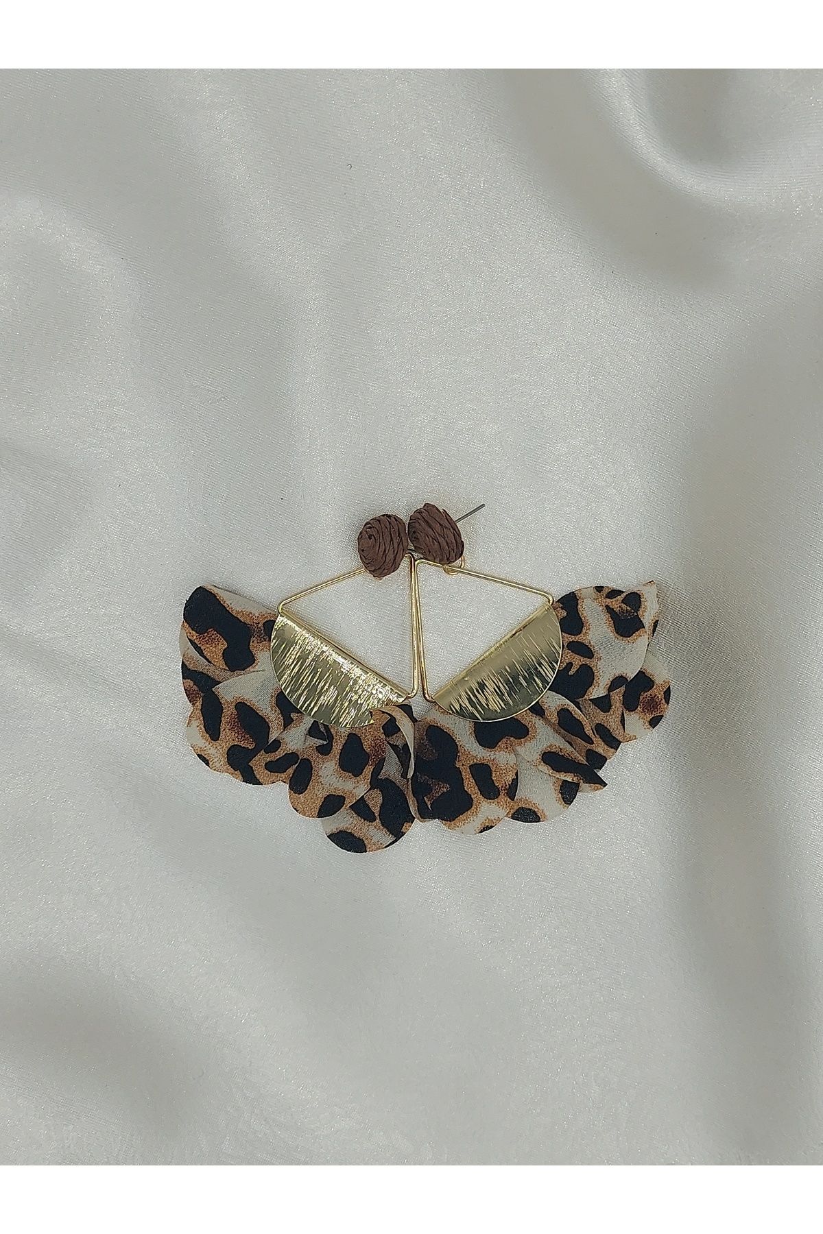 Leoparlı Sallantılı Gümüş İğne Küpe