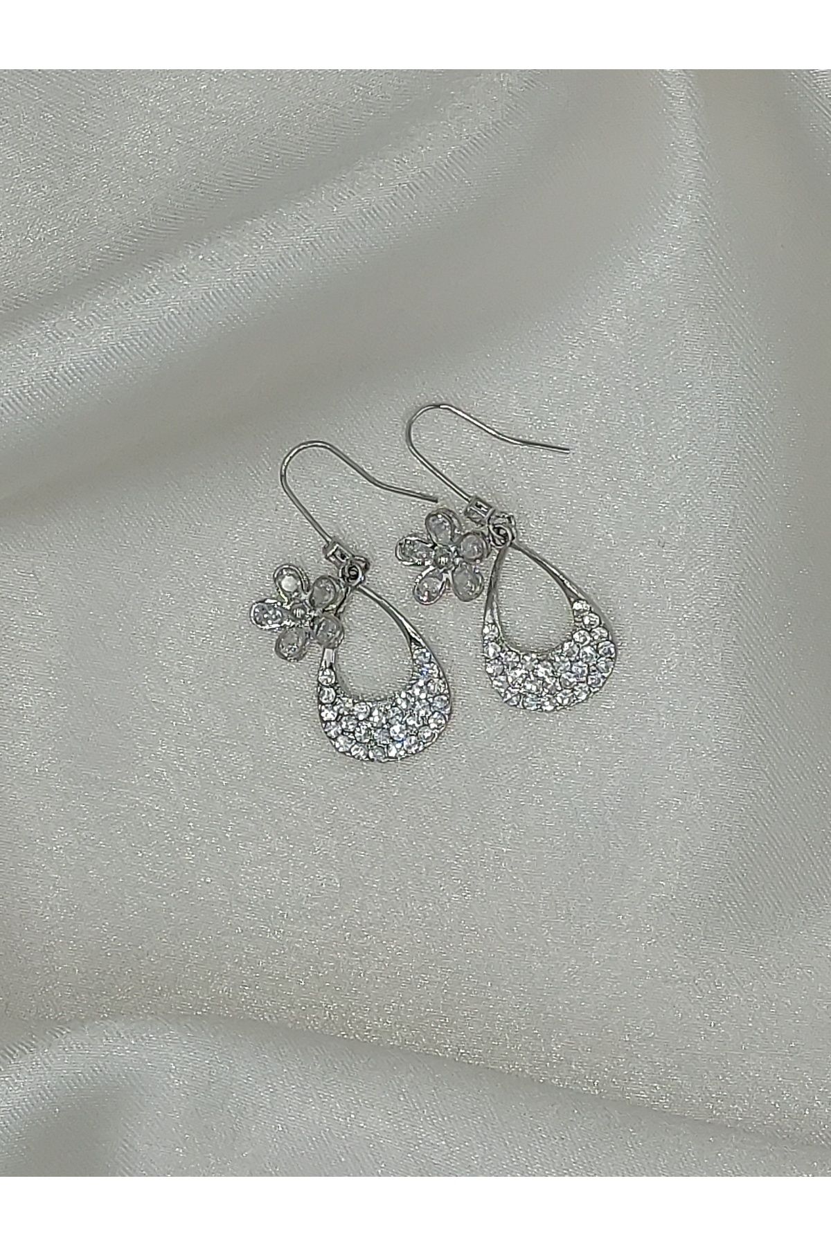 Sallantılı Çiçek Gümüş İğne Küpe