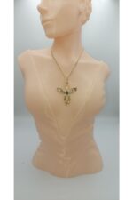 “316L Paslanmaz çelikten üretilen bu takı, suya ve neme karşı dayanıklıdır; altın kaplaması sayesinde uzun süre parlaklığını korur.”