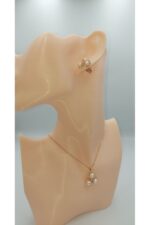 YSX İncili Altın Renk Kolye ve Küpe Takımı